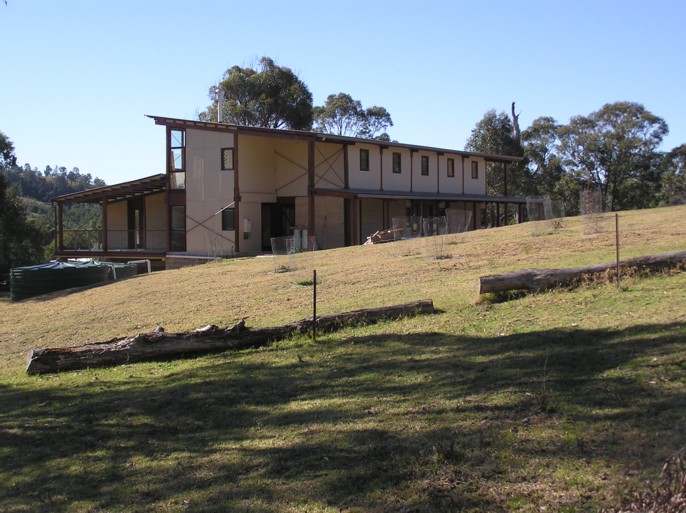 | BUILDING A HOUSE AS A COMMON PROJECT FOR BUILDING COMMUNITY 1) Why building? In order to offer accomodation for longer stay and deeper experience, a process of listening for what arises naturally: At Desert Creek House (DCH), we have regularly retreats. It allows people to come together and to experience community. But it is only accessible to people who are living near Bega, because there is nowadays no possibility for accommodation, except for maximum 1 or 2 persons. This lack of overnight possibility prevents people from staying longer, although longer retreats would allow participants to go deeper into silence and experience. We notice how people who stay at DCH for a longer period of time are transformed by the peace of the place. Our aim is therefore to offer a possibility for a longer stay with accomodation for a few people (around 10). The intention consists in creating a space which can be used in any way which will seem suitable, without any preconceived idea today. We have ideas about what it could be (personal retreats, practice of silent prayer, seminars on several topics, workshops) and we could have an input in it but we do not intend to be the only animators of this new space. It is like opening a space where life can take place. It is a little bit like the ark of Noah; it seems at the beginning without purpose or even out of place, but we believe that the meaning will arise very clearly when the space will exist. It will become what we will make of it. Listening to God is not a precise plan, it is a walk which will lead us where it has to. The focus is here on the process (building community) and not so much on the result (getting a new building). Community is not something which can be consumed as a good. It is something which we make and which happens in the present. 2) Description of the project A community house where 10-12 people can meet, pray and share meals: We intend to build a main house which is big enough to welcome a group of 10 to 12 people, with the corresponding facilities for meals and meeting rooms: kitchen, eating room, lounge, seminar room and prayer room. It will be also the place where we, Ursula and Yves, will live. When the new house will be in use, the two existent buildings (our present home Shantivanam and the present meeting room in Patmos) will be subdivided in a flexible and light way to allow the accommodation of people in private spaces (kind of rooms separated one from another by light walls or screens). The meetings will happen in the main house while people who want to spend some more silent time can stay in their room or walk on the land. Prayer will happen mainly in the prayer room in the main house. The building process has started; the retaining wall under the building has been built and the concrete slab for the ground floor has to be poured soon. 3) A solar and bioclimatic building An experimental solar house which illustrates the many ways of solar architecture in another understanding of our relationship with nature: Being an architect, it is a valuable opportunity for us to build an experimental solar and bioclimatic house. Solar architecture is not only about windows on the north side; it is also about catching the heat, storing it, giving it back by distribution into the different spaces, regulating, cooling, protecting, etc. The building materials will be renewable ones, as much as possible, and the construction will use simple techniques (craft techniques). Ecology is not only about alternative technology, it is mainly about another relationship between man and nature, or man and matter. It is why the choice for gentle techniques is important. They involve more work and lesser means. 4) Building community A way of community life which is inspired by the example of the first Christian communities in order to empower ourselves to implement deeper practices of justice and love: We would never build this house if it were only for ourselves, Ursula and Yves, because we have now a home which is big enough for us and which answers our needs. The meaning of this process of building consists in building together a space for our local community. This community is understood in a larger sense; it is the local community, beyond our differences of faith. It must be a space which remains open to all, in the sense that nobody should be excluded and in the limits of what is acceptable for us as inhabitants. By building it, we get involved in building our relationships in the community and in sharing our lives in the way and at the degree we feel is right. We are inspired by the first Christian communities where people shared everything they had. At DCH this prospect of sharing everything can seem very extreme because we are not ready to do so; we believe that everybody must remain free to offer what they want without being under social pressure of giving more. Gift has a meaning only if it is possible not to give. The purpose of community life consists in empowering ourselves for a better way of life according to Christian values: how can we make our local community more alive and more just. It is a spiritual search for a right practice. 5) A training for young people An opportunitu to train young people for the practice of alternative techniques, trades and energies: The building of an ecological and solar house means the implementation of gentle techniques and the use of renewable energy. It means also another form of architecture and another way to produce it. Therefore it is the opportunity to train young people to use these new techniques. We will look at the design of a solar house: how do we catch the heat, or can we store it or distribute it? how do we use the different spaces in a flexible way, according to the season or to the kind of atmosphere requested for the meeting? how do we build with rammed earth? how do we build a wooden structure where the mastery of physical forces becomes understandable? how do we insulate properly